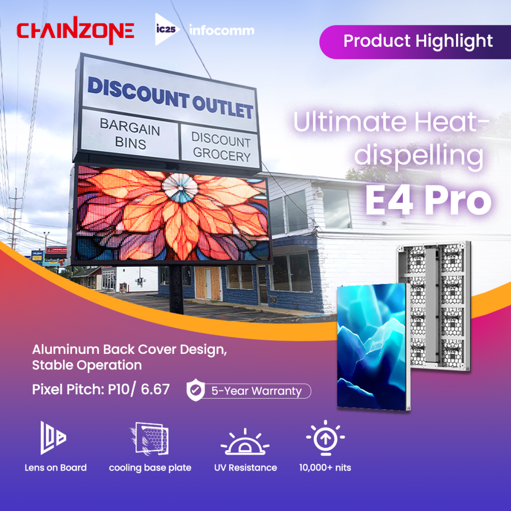 Chainzone’s Mini LOB outdoor display technology represents a significant breakthrough in LED outdoor displays.